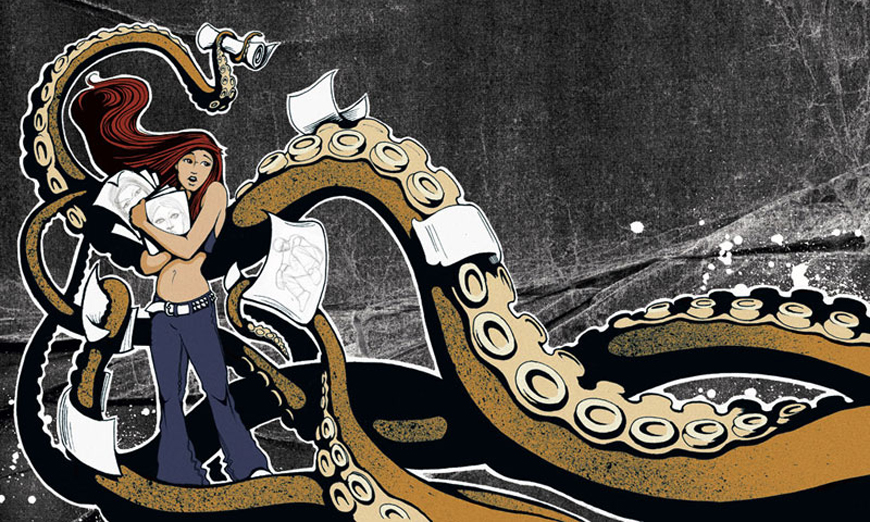 This illustration is for a feature about creatives protecting work from IP theft. Illustration by Adi Gilbert/ 99 Seconds
