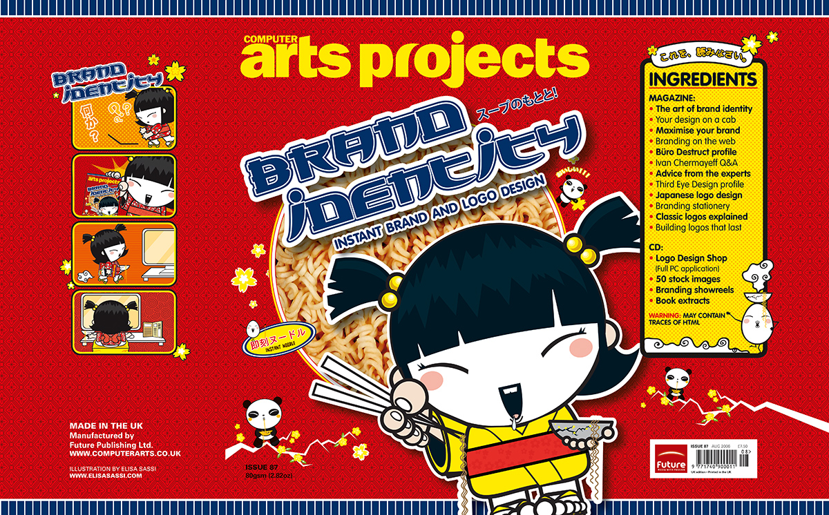 Issue 87 came inside a foil pack emulating a noodle packet. Inside the packet was a 2nd cover featuring a bowl of noodles. Art direction and design Johann Chan. Illustrations: Elisa Sassi.
