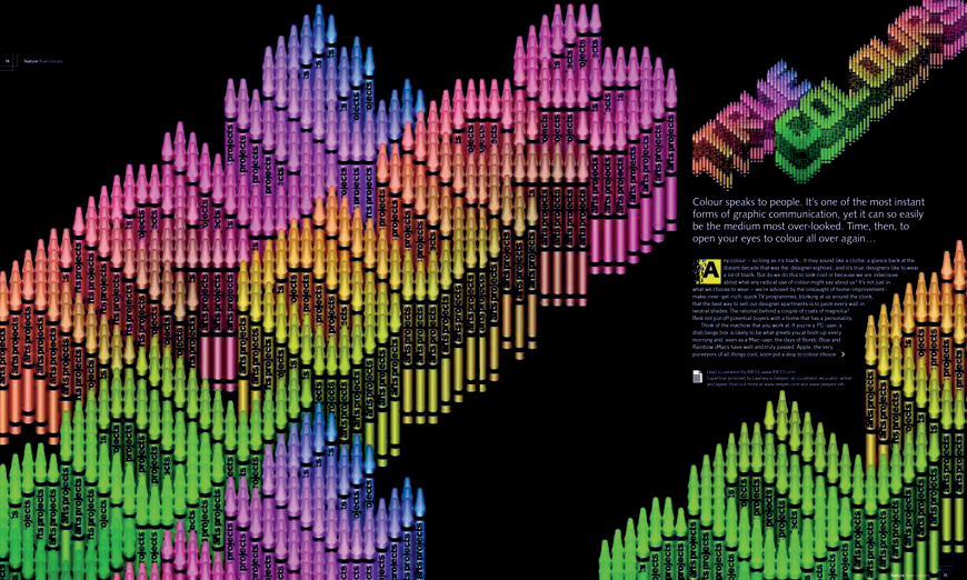 Fl@33 with this innovative illustration opener commissioned specifically for an issue about using colour which came with a free pack of Computer Arts Projects crayons.