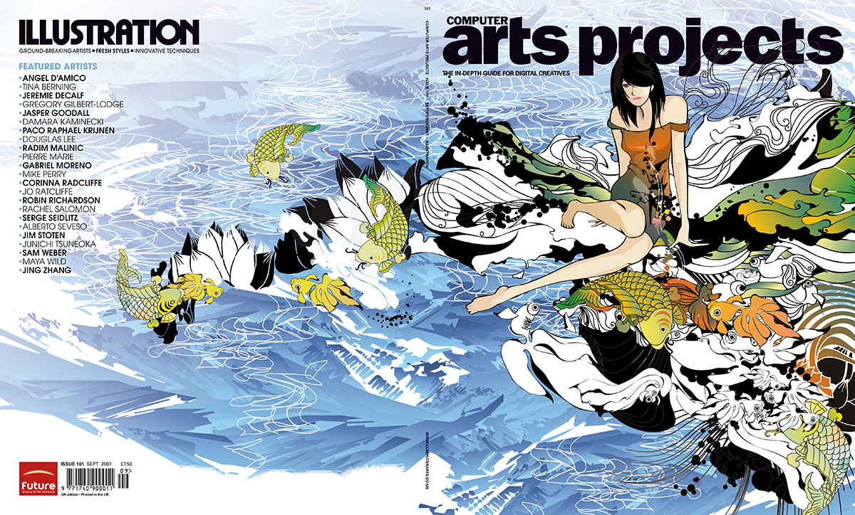 Jing Zhang cover Illustration was recomposed for a wrap around cover for issue 101, featuring the top digital illustrators of the time.