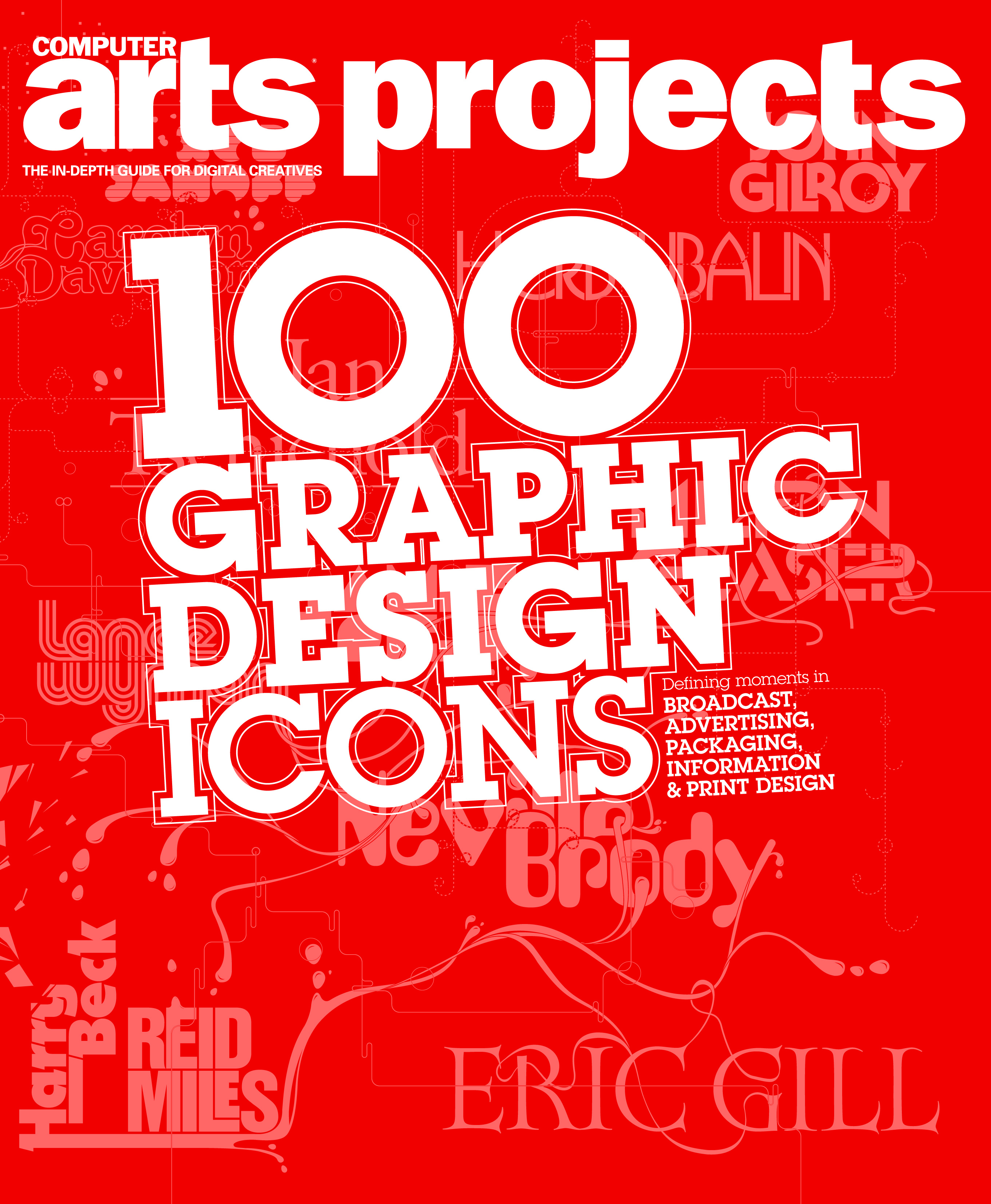 A commission for Red Design featuring 100 logos of different genres and styles for the Computer Arts Projects issue 100 cover.