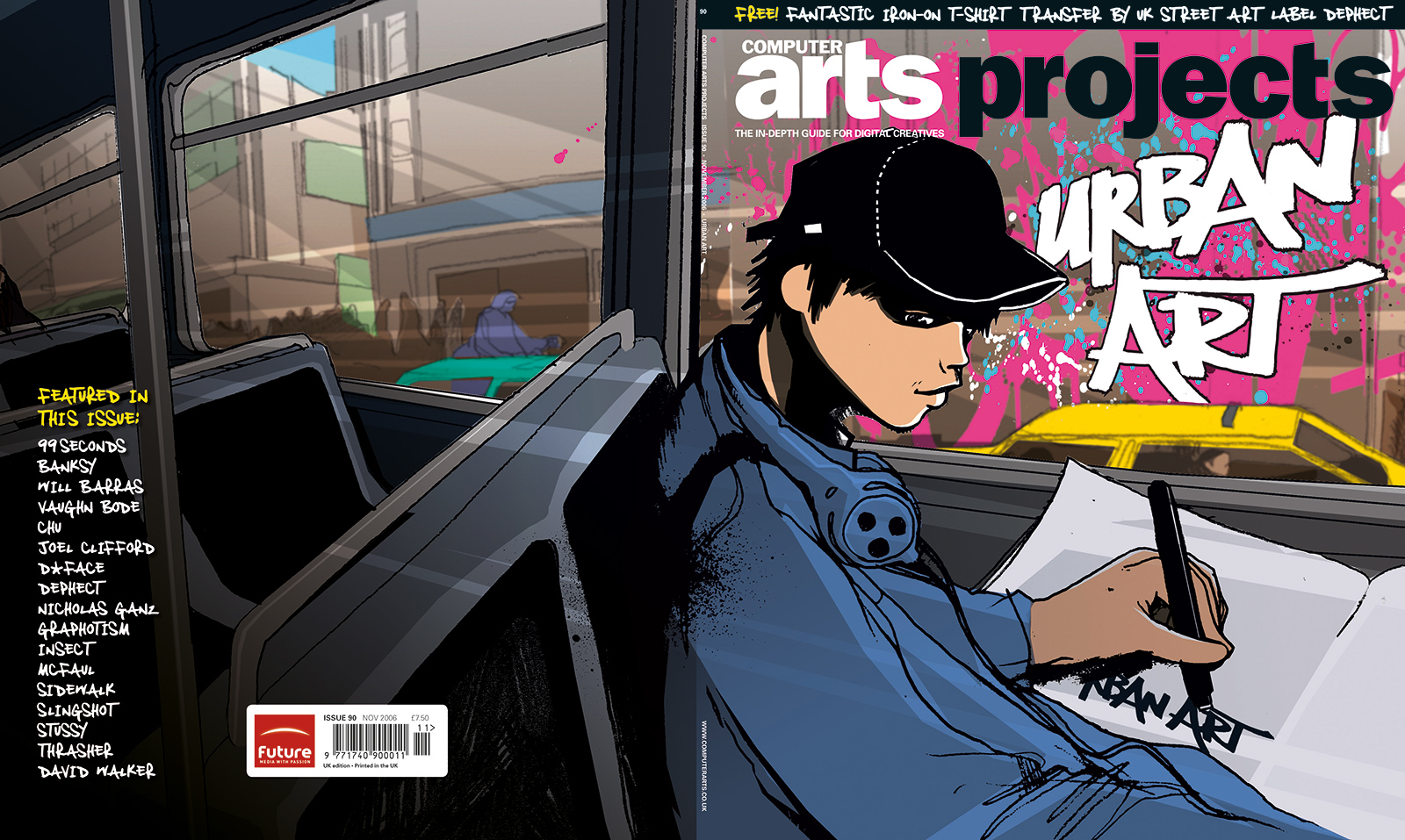 Full cover wrap illustration for the Urban Art issue by Will Barrass with tag header by CHU.