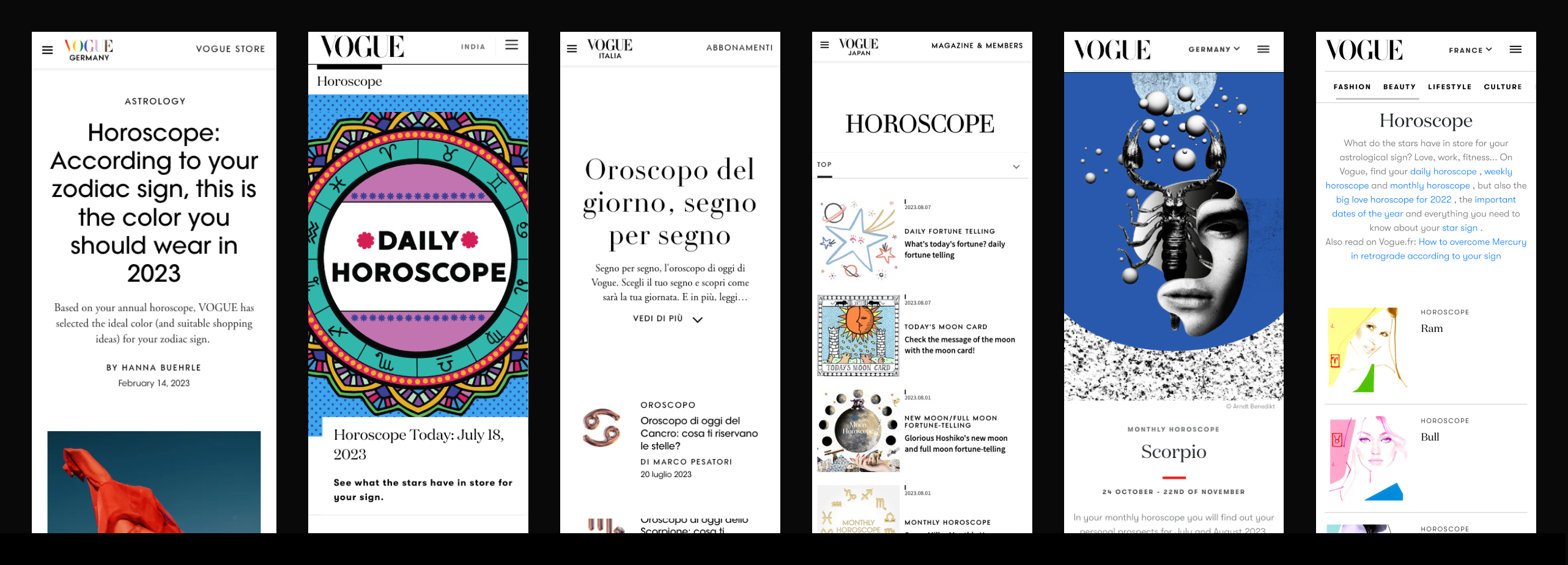 Vogue Horoscopes is an exceptionally popular subject for Vogue users in India and Japan. I was tasked with the responsibility of expanding this.