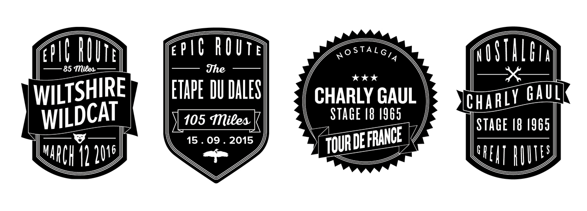 Badges and iconography inspired by vintage bicyle badges used as graphical devices for navigation.