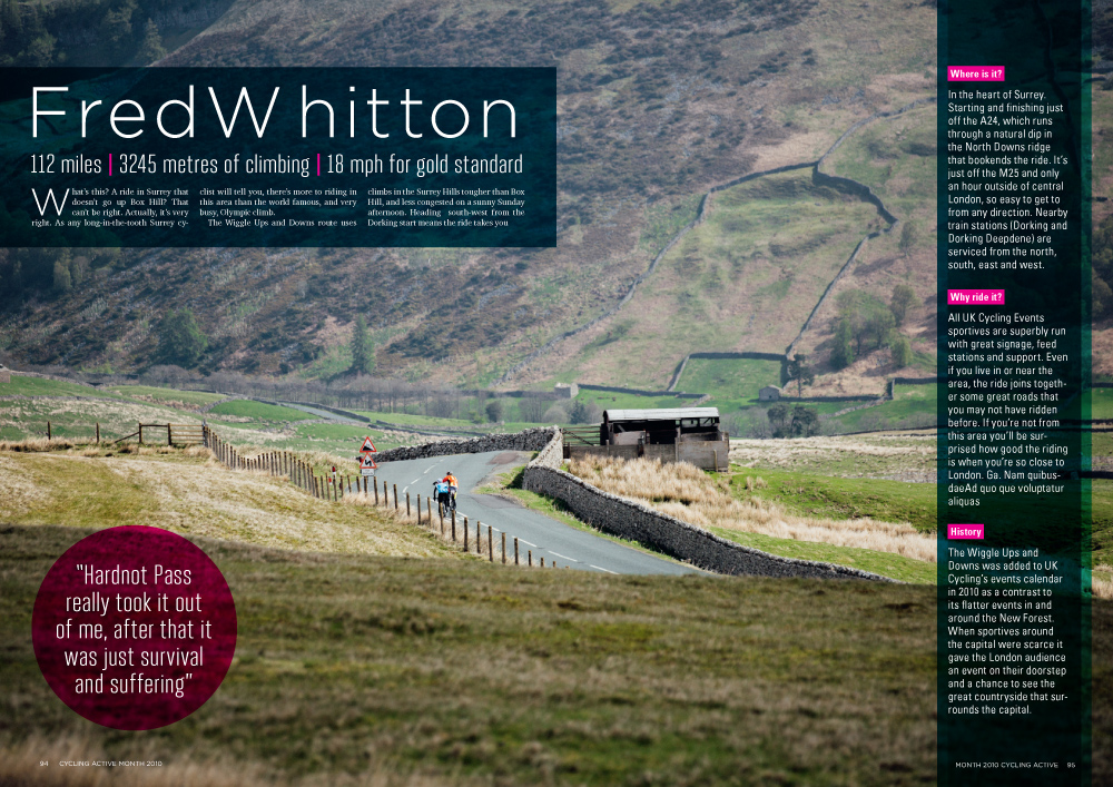 On this project I was hired to assist with the redesign of Cycling Active. The brief was to reposition the magazine from the commercial to the prestigious side of the market.