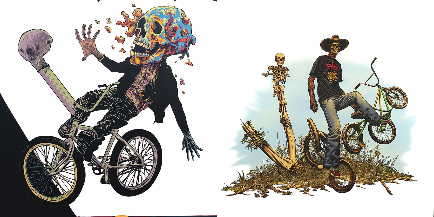 To try something different, I used this project as my first delve into AI. I used Midjourney, (with assitance from Mangle Mike) to reimagine an AI version of the 2 riders, and it came out with some incredible yet somewhat alarming results.